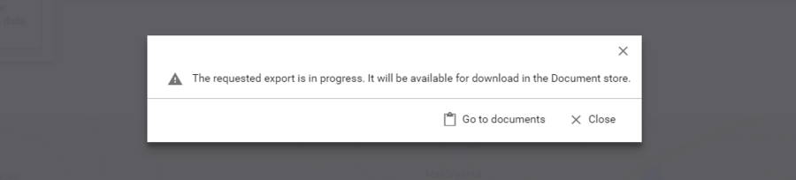 Having started the export process, the system offers a choice: whether to stay in the Events function and continue working, or to navigate to the document store to download the document.