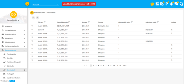 Ebben a pontban találhatóak az ügyfél szerződései. Egy ügyfél több szerződéssel is rendelkezhet, mivel új szerződés keletkezik amikor egy újabb szolgáltatást kezd használni, vagy újabb eszközt, esetleg eszközöket helyez használatba.