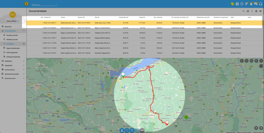 - Kiértékelés alapú útvonal nyilvántartás sofőrazonosítással