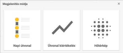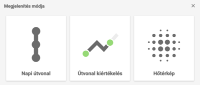 A lekérdezések eredménye az Eredmény részletezése oldalon, táblázatban jelenik meg. A táblázatban vízszintesen a kiválasztott dimenziók szerinti bontás, oszloponként pedig a kiértékelési mutatószámok jelennek meg. A kiértékelés eredménye térképen is megjeleníthető. A táblázat egy sorára kattintva háromféle térképes megjelenítési mód, a Napi útvonal, az Útvonal kiértékelés, és a Hőtérkép közül választhat a felhasználó.