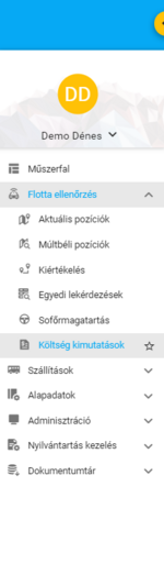 A Flotta ellenőrzés modul hasznos funkciója a Költség kimutatások, melynek használatával a rendszerben regisztrált költségek felhasználásával készíthet kimutatásokat a felhasználó. A költségek kimutathatók teljes flottára, vagy csak kiválasztott járművekre vetítve, ezentúl személy szerinti bontásban, valamint a különböző költségfajták szerint (szervízdíj, autópályadíj, bírság, stb) is.