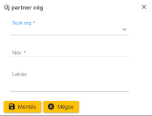 Partnercég az „Új partnercég” gombra kattintva hozható létre a rendszerben. Az alapadatok mentését követően a partnercég adatlapját szerkesztésre megnyitva több elérhetőség is rögzíthető, melyek közül egy legördülő listából választható ki az elsődleges, amelyik megjelenik a listában. A rendszerben rögzített költségeket létrehozáskor partnercéghez lehet rendelni, ezáltal a költség kimutatásban partnercég szerinti bontásban is lekérhetőek a költségek.