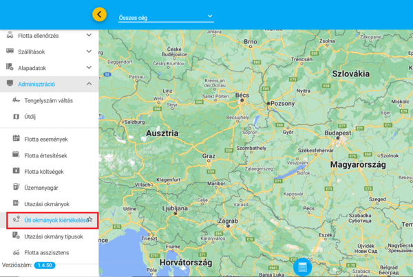 - az utazási okmányok (menetlevél és útnyilvántartás) listázására minden járműre és sofőrre,