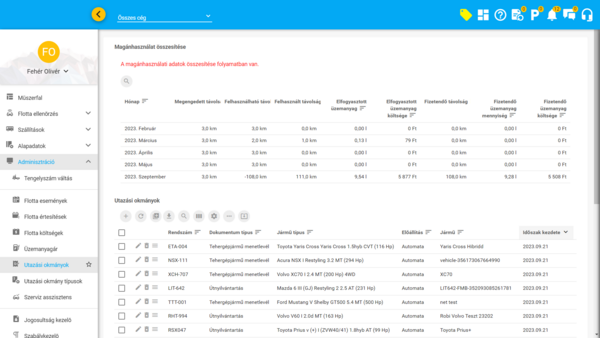 - az utazási okmányok (menetlevél és útnyilvántartás) listázására minden járműre, amelynél sofőrként szerepelsz,