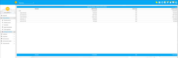 Miután a keresés paraméterei beállításra kerültek, az Elküldés gombbal indítható a lekérés. Az eredmény összegfokozatos táblázatban jelenik meg, bal oldalon a keresés dimenziói, a jobb oldalon a költségek szerepelnek tételesen. A költségek nettó összege, ÁFA tartalma és bruttó összege tételenként feltüntetésére került, az összesítések a táblázat legalsó sorában találhatóak.