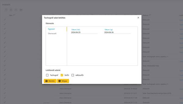 Ügyfeleink a járműre, és a sofőrökre vonatkozó adatokat egyaránt letölthetik.
