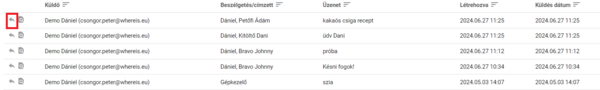 - a listából kiválasztott üzenetre küldhet választ a bal szélen elhelyezett válasz ( ⤺ ) gombra kattintva.