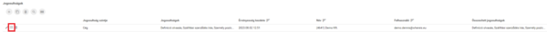 A szemetes piktogrammal jelölt ikonra kattintva kezdeményezhetjük az adott sornak megfelelő jogosultság törlését. A kattintást követően a rendszer egy dialog ablakot jelenít meg, melyen megerősíthetjük, vagy elutasíthatjuk a törlési szándékot. A törlés csak a megerősítést követően történik meg.