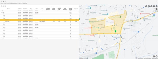 Az eredményt alapértelmezett sorrendjében járművekre bontott táblázatban láthatod, illetve a táblázat melletti térképen. A táblázatban a járműveken belül megtekintheted az évre,hónapra, és napra bontva a parkolásokat.