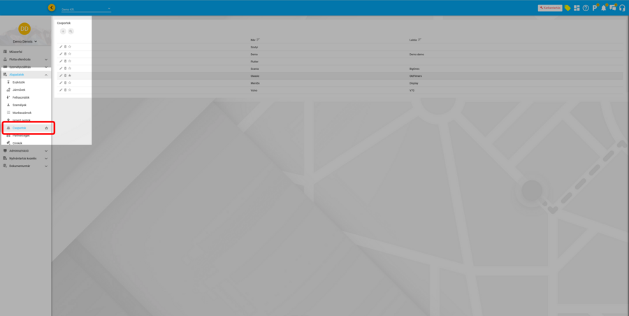 Alapértelmezetten a tételek a listában az Összes elnevezésű csoportban jelennek meg, azoknál a felhasználóknál is, akik egyéni igények alapján nem hoztak létre csoportot. Amennyiben azonban a felhasználó létrehozott csoportot vagy csoportokat, az eszközök, járművek és személyek természetesen a felhasználó által létrehozott csoportokba rendezve is megjelennek.