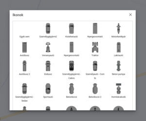 Az ikon beállításakor jármű, személy és háziállat piktogramok közül választhatsz.