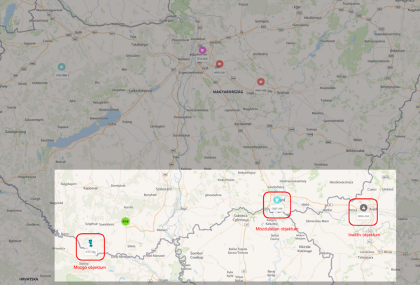 A mozdulatlan objektumokat továbbra is kávéscsészével jelöljük, az általad kiválasztott ikont a térképen mozgás közben jelenítjük meg. Az általad beállított színt az álló és mozgásban lévő objektumok is felveszik, a mozgás közben kirajzolt nyomvonallal egyetemben.