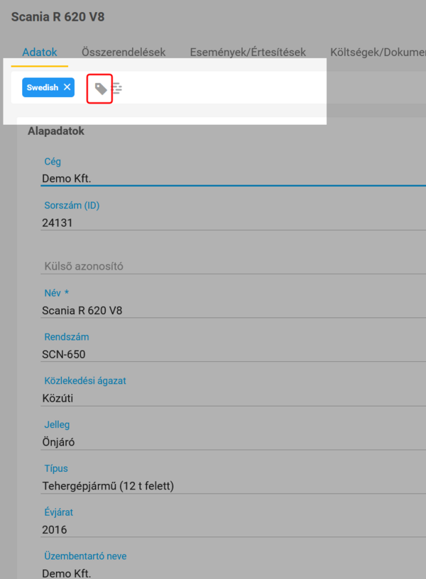 A csoportba rendezés szempontját kifejezésre juttathatod a címke elnevezésekor. Amennyiben flottádban bérelt járművek is futnak, az ezekkel kapcsolatos entitások jelölésére létrehozhatod a Bérelt címkét, de egyéb praktikus szempontok mentén is használhatod a funkciót: dízel, benzin, kombi, platós, stb.