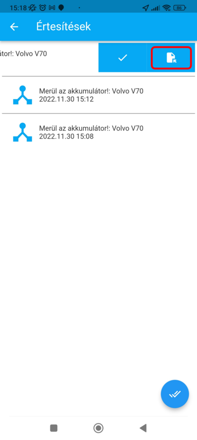 A kolompra koppintva megnyílik a kolomp értesítések megtekintő felülete, egy függőlegesen gördíthető lista.