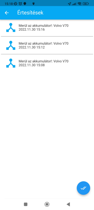 A push üzenetre koppintva az alkalmazás megnyitja az események felületet, és megjeleníti az adott eseményt.