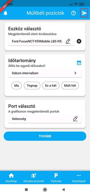 - eszköz kiválasztása (ha az aktuális pozíciókból, az eszköz adatlapról navigáltál ide, ezt a mezőt az app automatikusan kitölti)