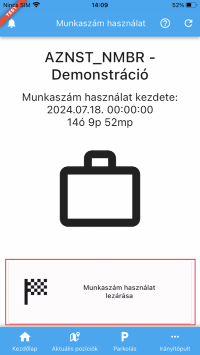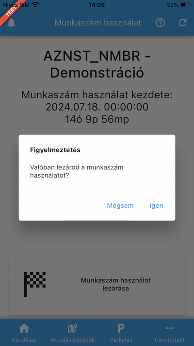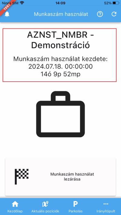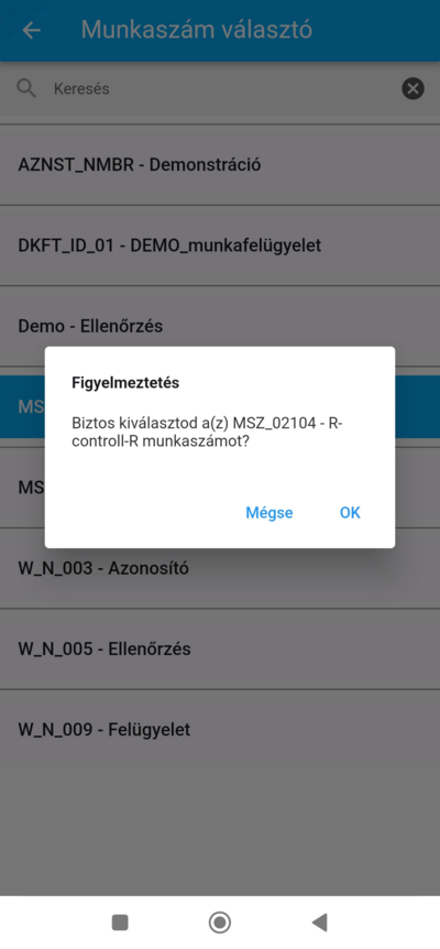 majd az OK gombra koppintva a rendszer bejegyzi a munkaszám használatot.