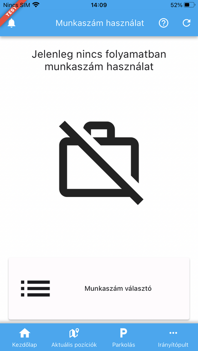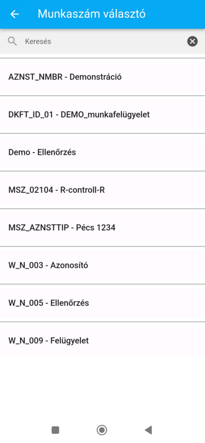 Amennyiben nem rendelkezel nyitott munkaszám használattal, a képernyő alsó hányadában elhelyezett Munkaszám választó gombra koppintva nyithatod meg a webes felületen már korábban létrehozott munkaszámok listáját.