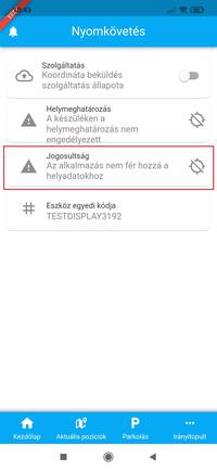 Alkalmazásunk a felhasználó mobileszközének helyadatait felhasználva biztosítja a nyomkövetés funkció működését. A jelenleg érvényes általános adatvédelmi szabályoknak megfelelve a felhasználónak a beleegyezését kell adnia a helyadatok ilyen célú felhasználásához.